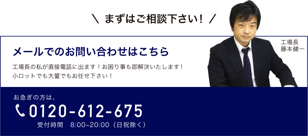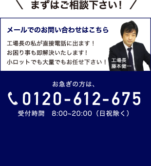 急なご依頼でも工場長が直接電話で受付させて頂き、即決させていただきます! -